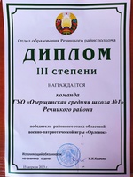 Поздравляем команду Озерщинской средней школы №1, занявшую III место районного этапа военно-патриотической игры "Орлёнок"!